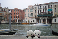 次の日、テコポンとデコポンはヴェネツィアという町に行きました。 すると、お空を飛んでいたかもめさんが声をかけてくれました。 「テコポン、デコポン、こんにちは!!素敵な町でしょう!!この町は海の中にあるんだよ。」 「かもめさん、教えてくれてありがとう!!でも海の中にあるなんて信じられない!!」 テコポンもデコポンもびっくり。 「ここはね、グランカナルっていう一番大きな運河なんだよ。 そしてこのリアルト橋は一番有名な場所なんだって!!」 かもめさんからいろいろ聞いて、テコポンもデコポンも、びっくりしっぱなし。 「ゴンドラって船は気持ちがいいんだって。乗ってみたいね〜。」 ほら、ほら。 テコポンとデコポン、落ちないように気をつけてね! つづく・・・