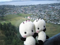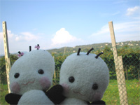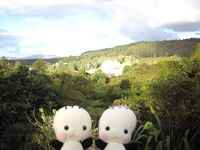 今日はとってもいい天気。 テコポン、デコポンははじめてロープウェイにのりました。 ちょっとドキドキです。 「うわぁ〜、高いね!でもロトルアって、とってもきれいな町だね!」 「そうね!デコポン。町がだんだん小さくなっていくね。」 ふたりはとってもご機嫌。 ロープウェイを降りてしばらく行くと牧場がありました。 「こんにちは。テコポン、デコポン。よく来たね。ここには大きい牛や羊がたくさんいるよ。」 と大きな鳥さんが教えてくれました。 「ありがとう!鳥さん。たくさんのお友達に会えるといいなぁ。」 テコポン、デコポンはワクワクしながら歩いていきました。 つづく・・・