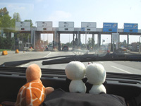 イタリアに無事についたテコポンとデコポンは、お友達になったかめさんと一緒に、生まれて始めて車に乗りました。 「わぁ!!すいすいどこへでも行けちゃうね!」 テコポンもデコポンも車の中から大興奮です。