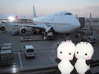 テコポン、デコポンはかもめさんから話を聞き、次にイタリアに行くことにしました。 「かもめさん、イタリアってどんな所??」テコポン、デコポンは興味津々です。 「イタリアはブーツのかたちをしているんだよ。とってもきれいなところだよ!」 「ふ〜ん、ブーツって何?」 「女の人がはく長靴みたいなものだよ。」 「わぁ、長靴??面白いところだね。早く行こうよ!!」デコポンはぐいぐいテコポンを引っ張っていきます。 「お兄ちゃん、ちょっと待って〜。もう!! せっかちなんだから!!」 飛行場に着いたテコポンデコポン。 「あの飛行機に乗るんだね。楽しみだなぁ・・。」 あらあら、飛行機の中でもはしゃぎっぱなし。 楽しい旅になるといいね。 つづく・・・