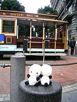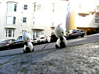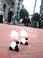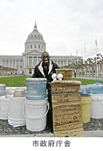ある日、お城のように大きくてすごくきれいな所にいきました。 ここは、サンフランシスコのお役人さんが働いているところなんだって。 そしたら、いろんなものをポンポンたたいているお兄さんがいました。 「何しているの?」って聞いたら、ストリートミュージシャンっていうのをしているって教えてくれたよ。 バケツやおなべが楽器(ドラム)になっちゃうんだよ! いろんな音が出るんだね。びっくり!! ぼく達も一緒にたたきました。 とっても楽しかったよ! つづく・・・