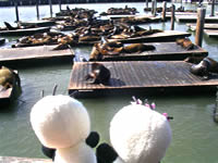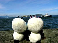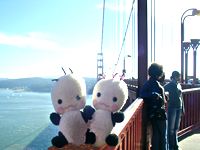 テコポンとデコポンは、水族館のお魚さんにたのまれて、ふるさとの海にいる、お魚さんのお友達に、お手紙をとどけたり、「元気にしているよ」とか、「たまには会いたいな」という言葉を伝えるために、世界中を旅行します。 このあいだは、 アメリカの西海岸のおおきな街、サンフランシスコというところへ、あざらし君たちのお友達が、たくさんいると言うので、会いにいきました。初めて見る、大きなおおきな橋やにょきにょき生えているビルにびっくりしました。 これからも いろんなところに遊びにいきます! 楽しみにしていてね。